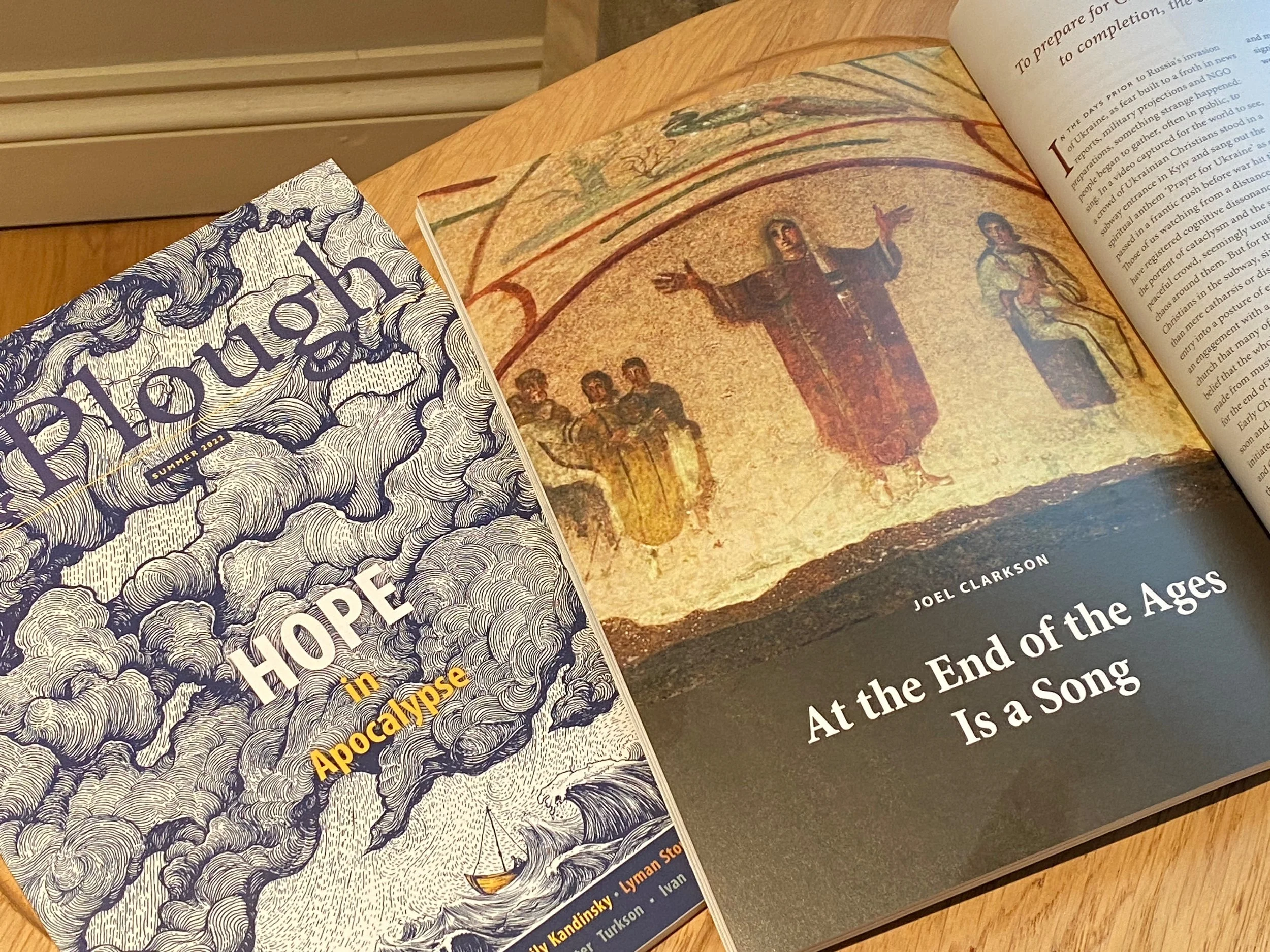 Folks, thrilled to point you to a new article I’ve just had published in Plough Magazine's summer 2022 print issue, Hope in Apocalypse. I was super thrilled to get to contribute a piece that combines my love for music with some of the big themes I've been working on in my doctoral thesis—liturgy, eschatology, and the theology of the early church. Hope you’ll give it a read! Check it out here, or if you’d like to get a print subscription to Plough, you can do so here. Thanks friends!